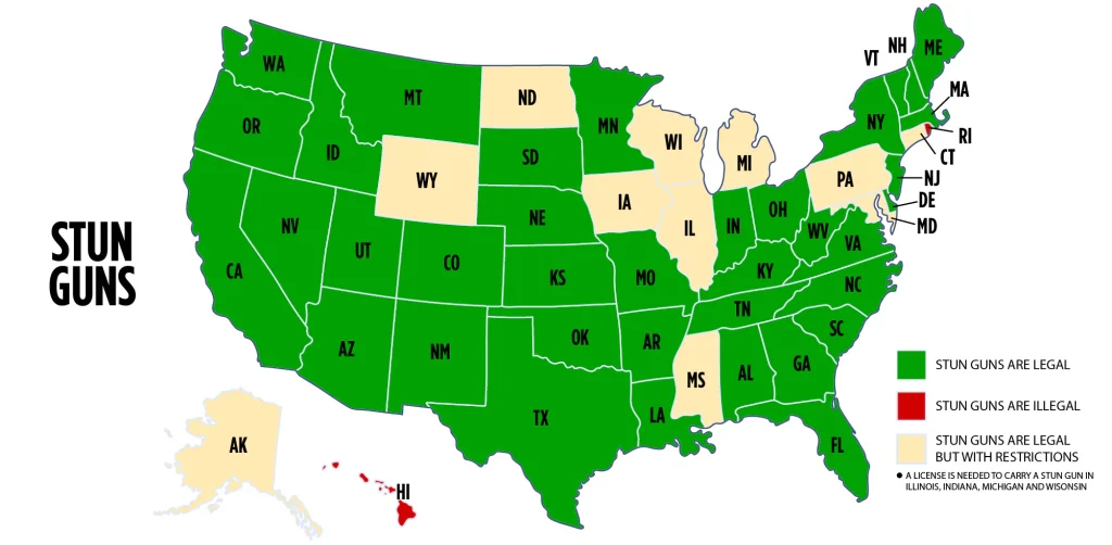 Stun guns are legal for civilian self-defense in the other 48 states as long as: