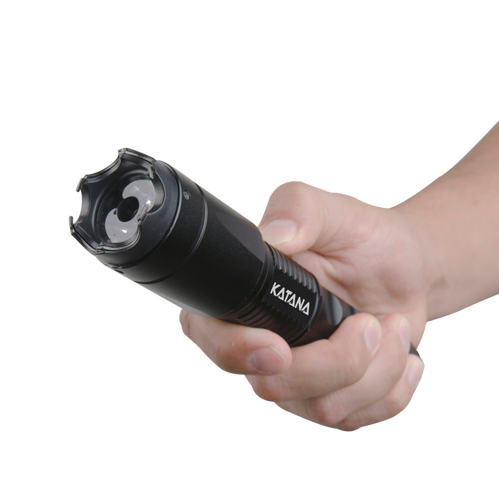- High voltage stun capability can immobilize aggressors, or preventatively scare them off with its thunderous sound.